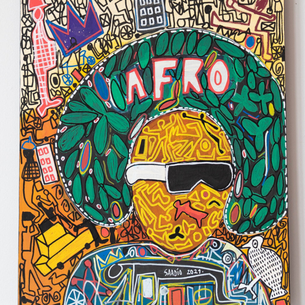 Saadio: Now my themes are “Africa My Home,” I try to promote Africanness. I want to bring more Africanness to my works. Not Basquiat.