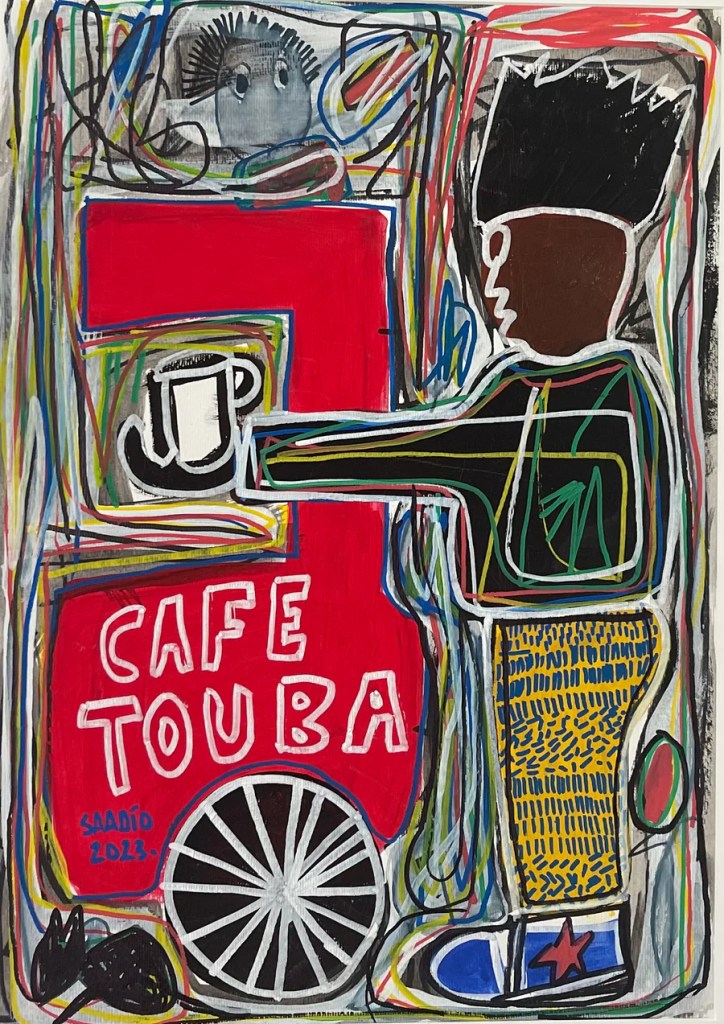 If the Senegalese painter is concerned with expressing his Africanness in his current themes, it is because throughout his artistic career, he has only told the story of the street. A street he knows well, having lived there for several years after being forced to leave the family home where his polygamous father viewed his artistic impulse unfavorably. Saadio was 22 years old when he began his journey on the streets.