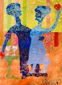 His paintings on family, migration, love, and couples reflect a keen sensitivity to these fundamental dynamics, drawing from his observations of societal issues and his deep spiritual insights. By exploring these subjects, he delves into the essence of humanity, transcending cultural and geographical boundaries. Djibril also questions otherness, thinking beyond superficial differences to grasp what constitutes our common essence. As he describes it: “I have observed nature a lot, I cut leaves to see what was inside. I broke stones to see their content.”
