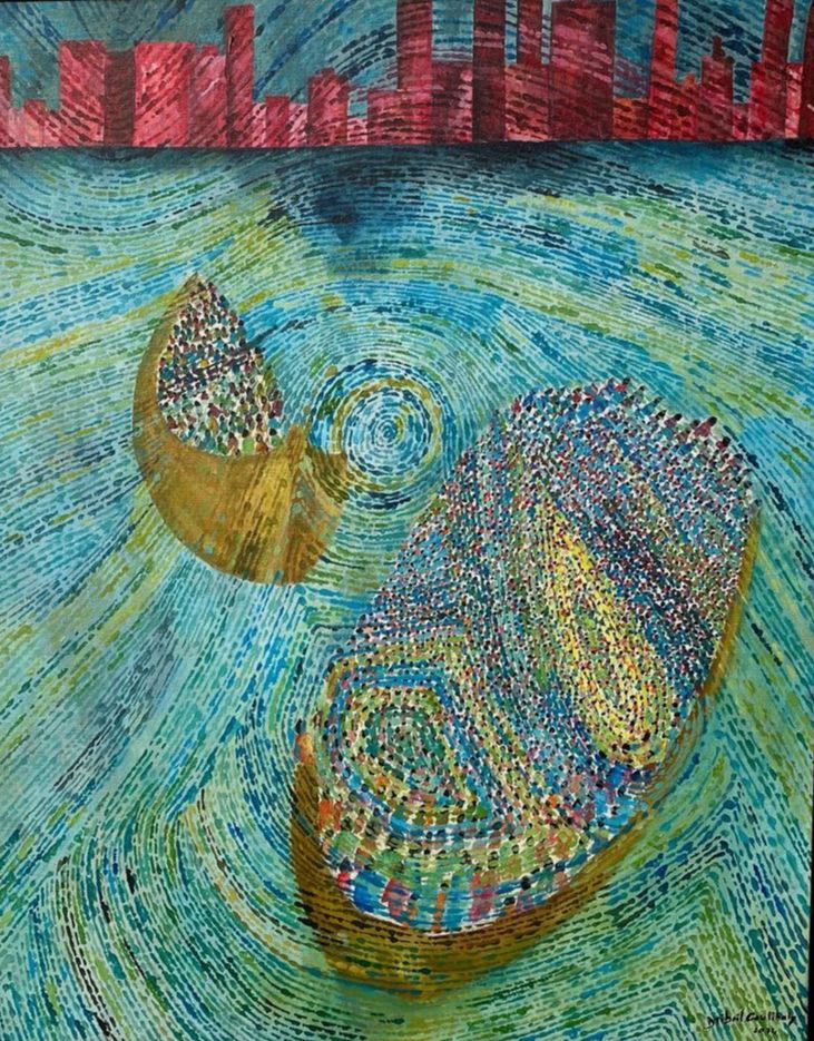 His fascination with fingerprints symbolizes this quest for universality: each individual has unique prints, but this singularity also reveals our universal interconnectedness. By highlighting this common peculiarity, Djibril reveals a profound truth about humanity – we are both unique and inexorably linked. His artworks thus become visual meditations on identity, connection, and the universality of the human experience, inviting viewers to reflect on the complexity and beauty of our shared existence. Through his art, Djibril seeks not only to be seen but to be felt, inviting deep introspection where each fingerprint becomes a symbol of human uniqueness and universal spiritual connection. “My works are not meant to be looked at, but to be meditated upon“, he says.