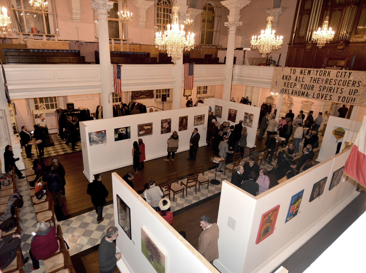 Additionally, we simultaneously organize the tour, as the exhibition is held in varying locations rather than in a consistently fixed setting, allowing flexibility to respond to world events, arising invitations, opportunities and needs. Our exhibitions are often held in heavily trafficked public spaces, or even “sacred spaces,” as opposed to only traditional art venues in order to maximize viewership from the widest possible demographic. The atmosphere of the exhibition space is important to us, as we wish it to have a contemplative nature, if at all possible, to facilitate the message of the art exhibition. As referred to earlier, an exhibition itself serves as a catalyst for the development of a variety of programs and events around it to stimulate discussion, dialogue and education, promoting further understanding (e.g. talks, forms, lectures, music, literary readings, film screenings, panels, children’s activities, school class field trips, etc.).