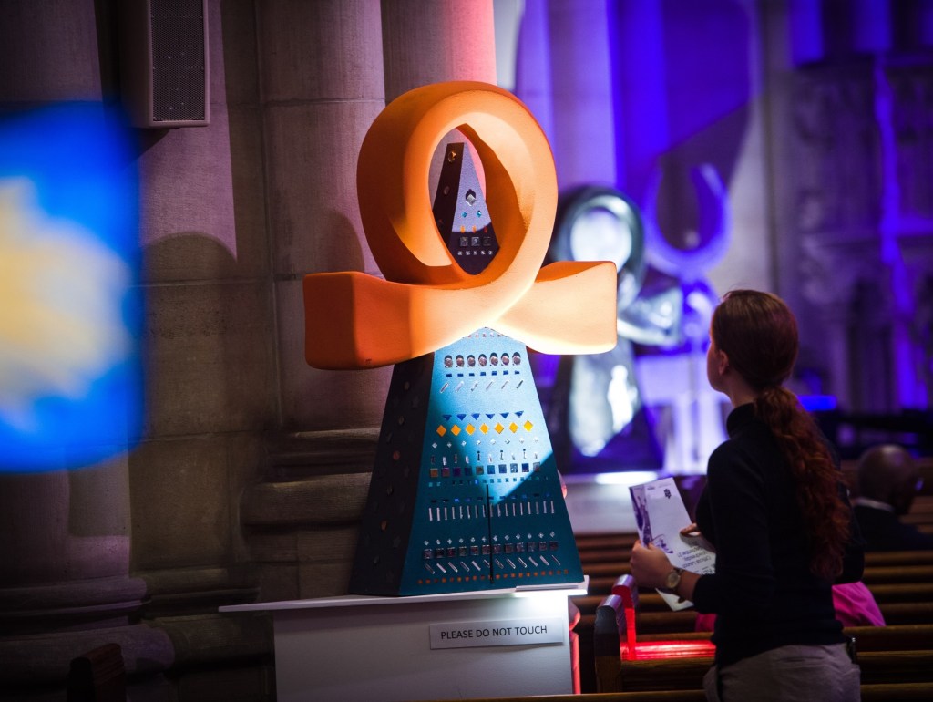 Another example is an installation exhibition titled THE KEY in 2016-2017, that used the globally recognized ancient Egyptian symbol of the “ankh” as the canvas for a contemporary message of hope for a harmonious, peaceful and tolerant world. The exhibition showcased the work of 40 premier and emerging Middle Eastern and Western contemporary artists, focusing on a modern three-dimensional fiberglass portrayal (1.20 meter in height) of the ancient “Key of Life,” the Ankh, the Egyptian hieroglyph that means “life,” which is seen as the oldest known symbol of pluralism, tolerance and harmony in the world. The exhibition addressed “the key” to living in a peaceful and harmonious world, and it served as a powerful means to unite people of different ethnic, cultural and religious backgrounds. THE KEY opened in Cairo, Egypt in 2016 and was then showcased in London, England and New York City, USA.