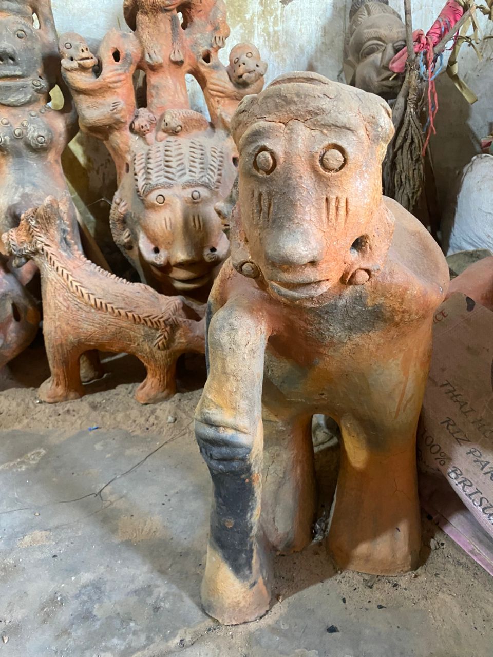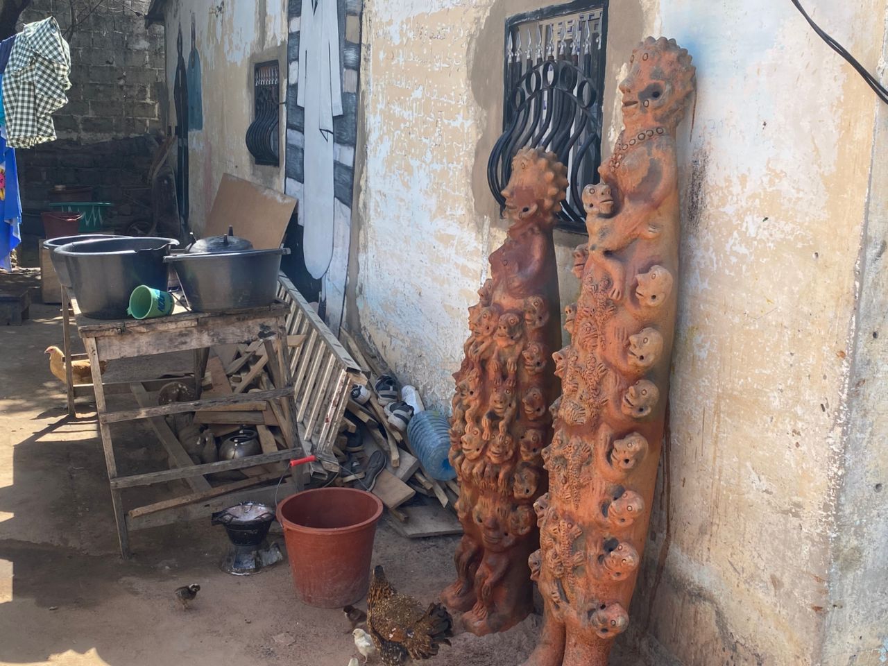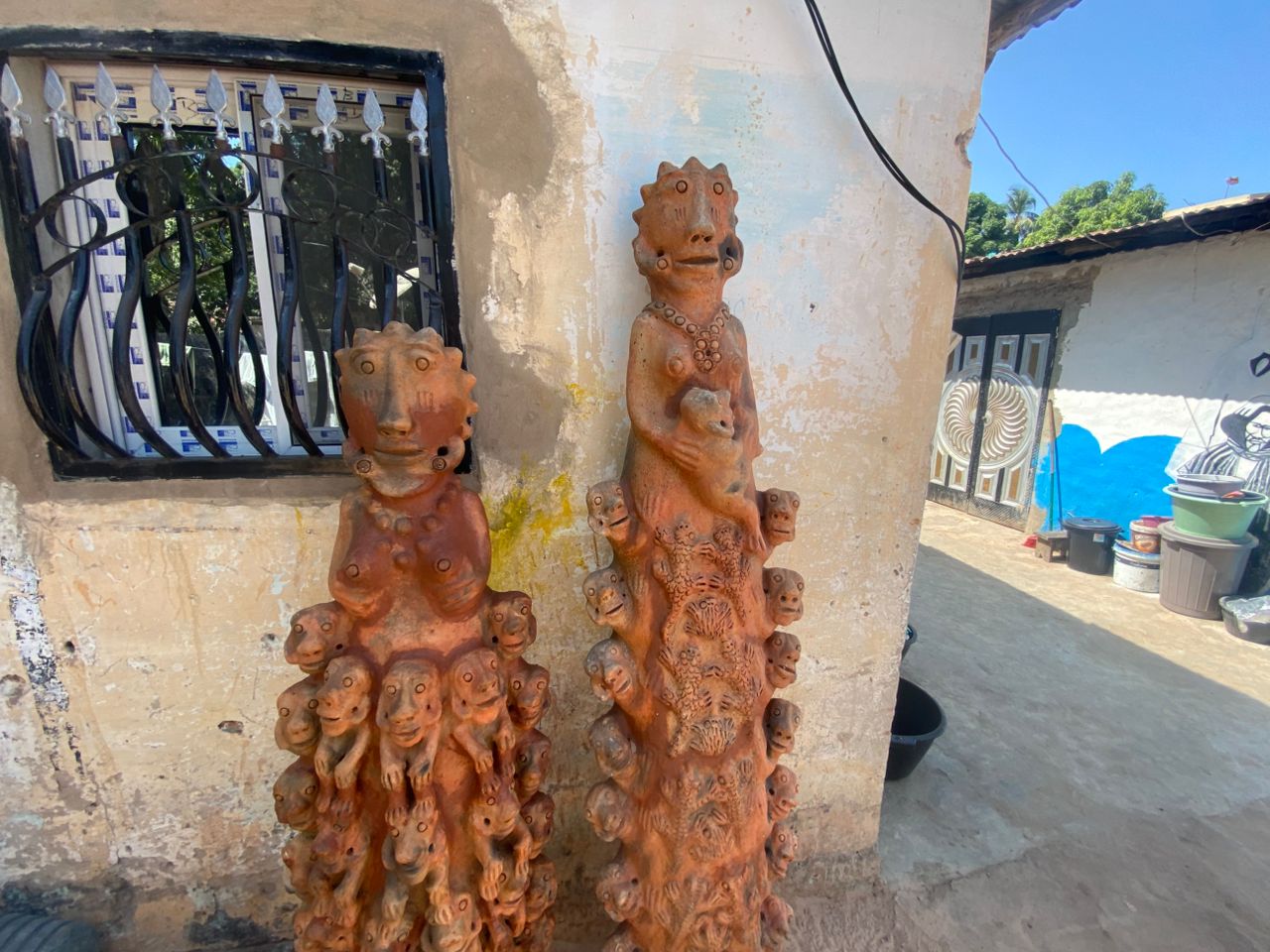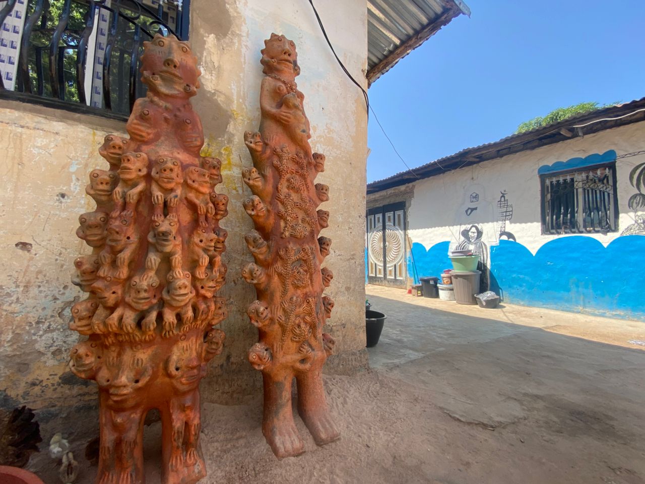Seyni warmly welcomes us, surrounded by her stunning creations. When asked which of her works she prefers, she pauses, reflects, and then points with a smile to a terracotta sculpture about 80 cm tall: a kneeling pregnant woman carrying a water jar on her head.