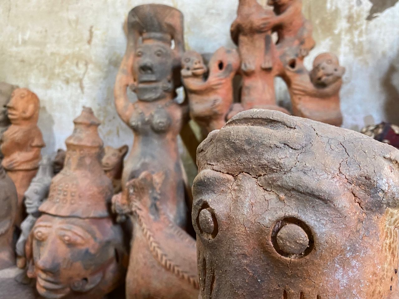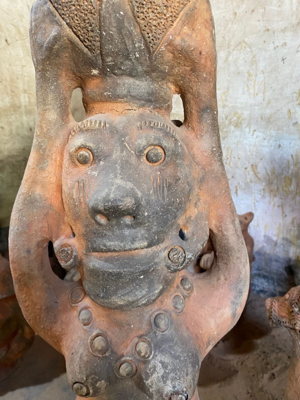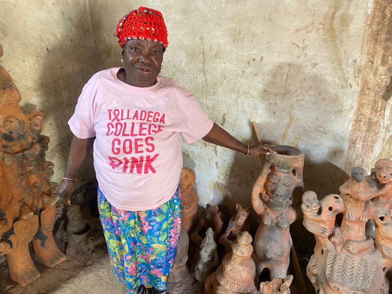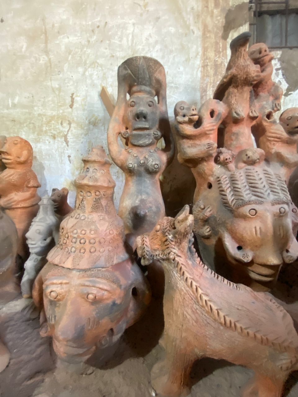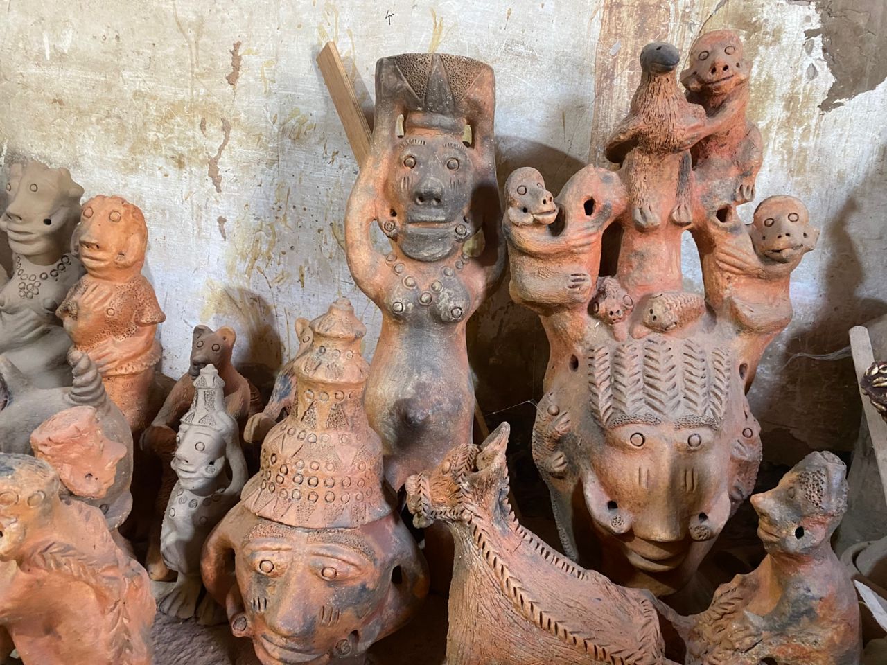 Seyni warmly welcomes us, surrounded by her stunning creations. When asked which of her works she prefers, she pauses, reflects, and then points with a smile to a terracotta sculpture about 80 cm tall: a kneeling pregnant woman carrying a water jar on her head.