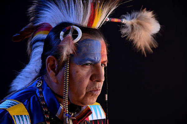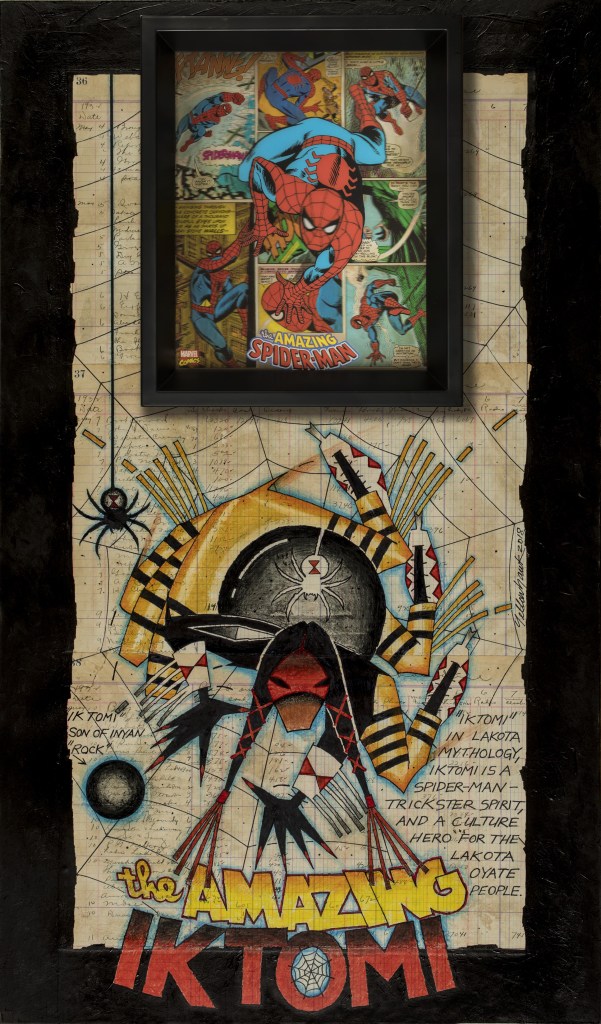 His formal study of art at Marion College and the Ohio School of Art and Design deepened his skill across media, but his work remains guided by traditional spirituality. Horse, buffalo, elk, geese, and eagle nations often appear alongside the medicine wheel and the flowing lines of ledger art, an historic form used to record Native American experience.